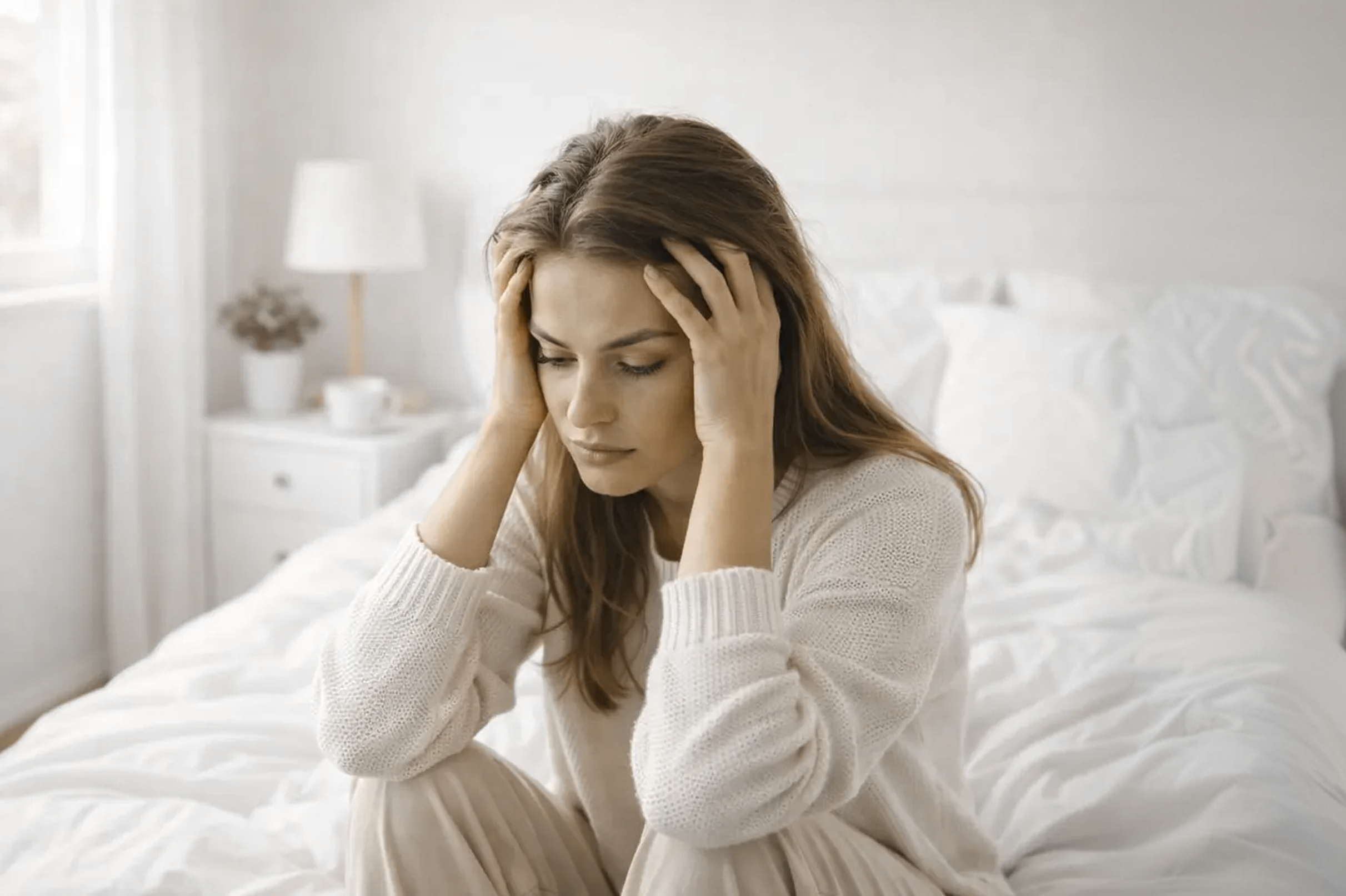 1. Проблемы со сном. Сложно уснуть из-за потока мыслей, частые пробуждения среди ночи или чувство разбитости утром, даже если спали достаточно.